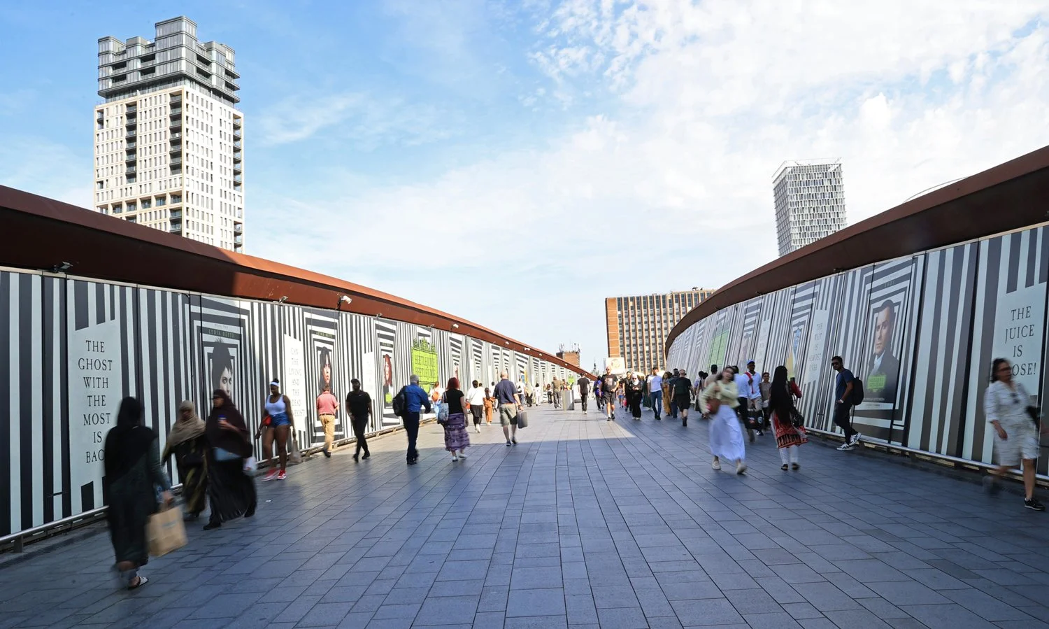 The 130m long footbridge connecting Stratford Station to Westfield Stratford City shopping centre, boasts a whopping 2000sqm of wall wrap on both sides of the the walkway as visitors cross between the station and the mall. Utilising the stunning 6 sheet character posters from the US, I expanded the design to accentuate the mind-boggling spiral motif to appear continuous, spinning in and out in size, as it spanned the bridge.