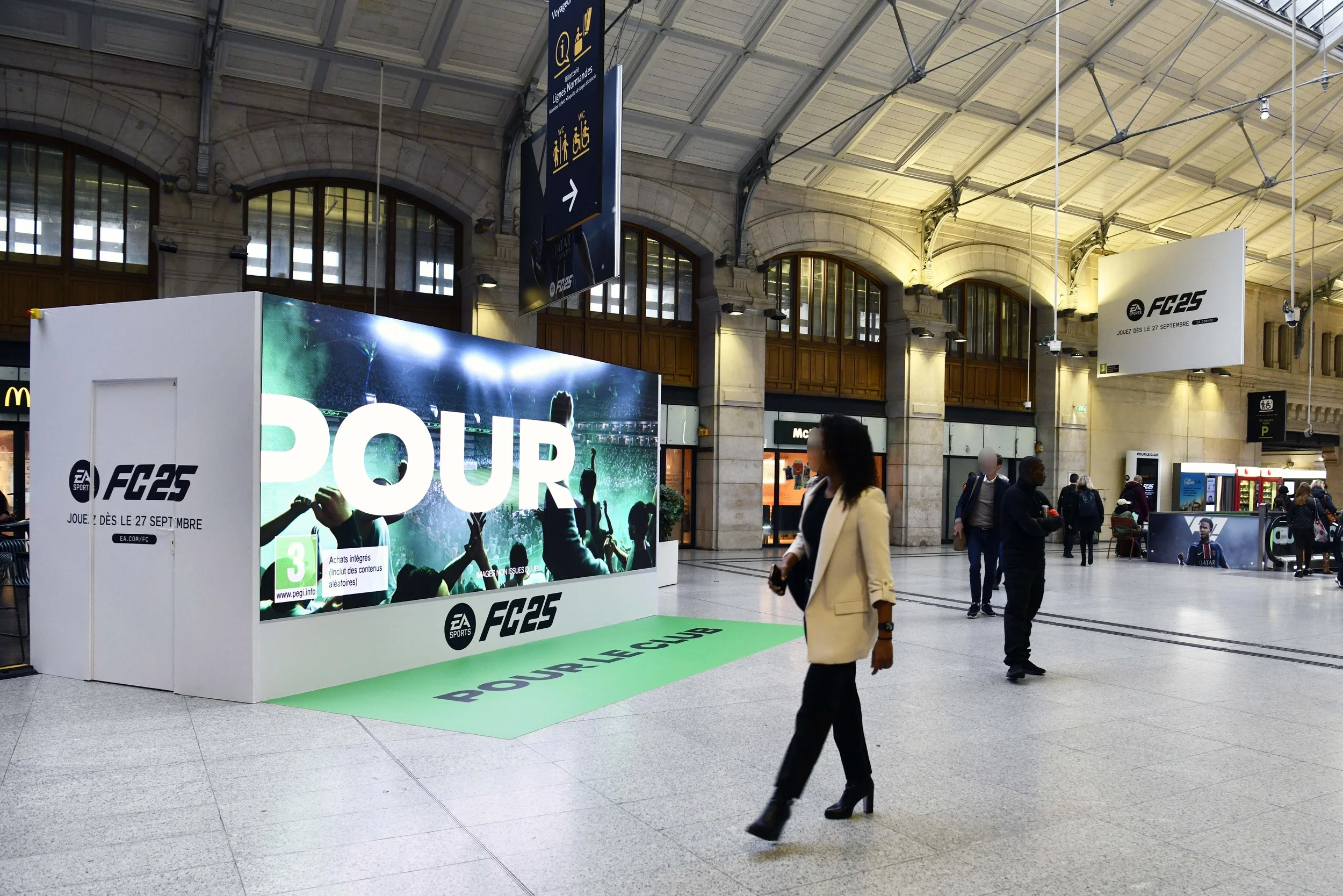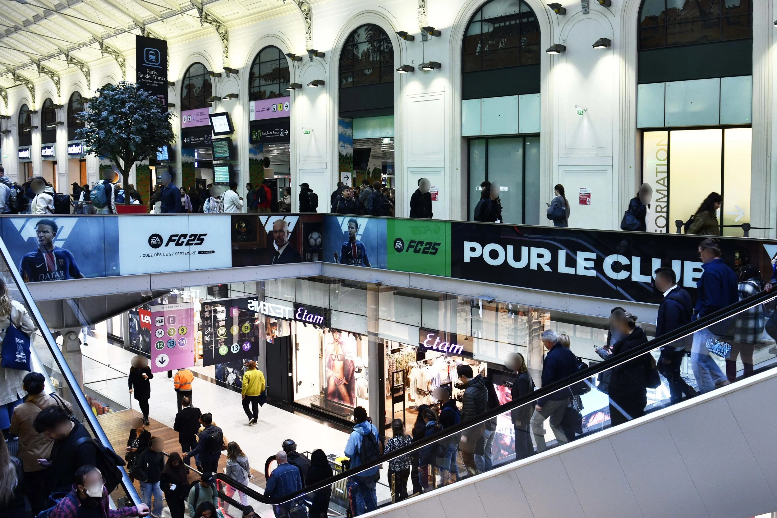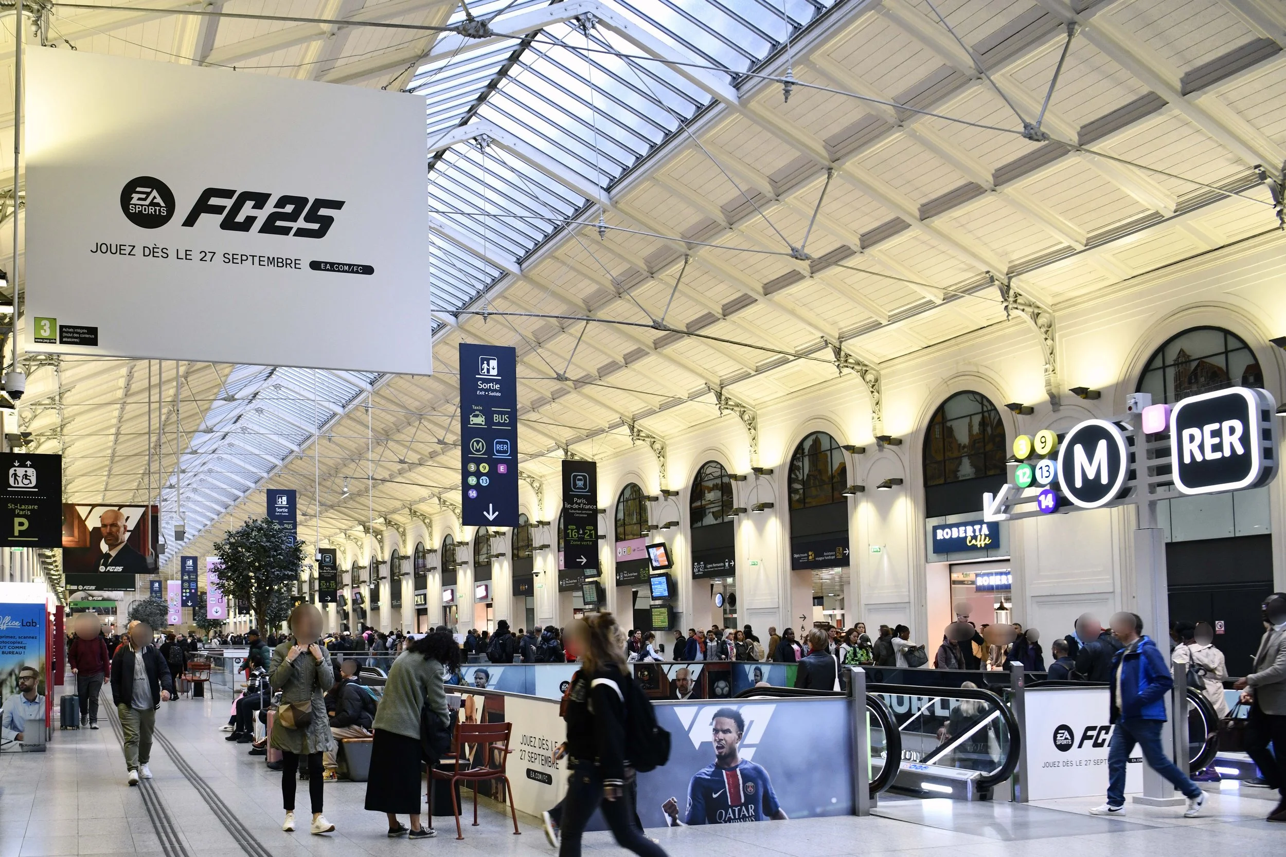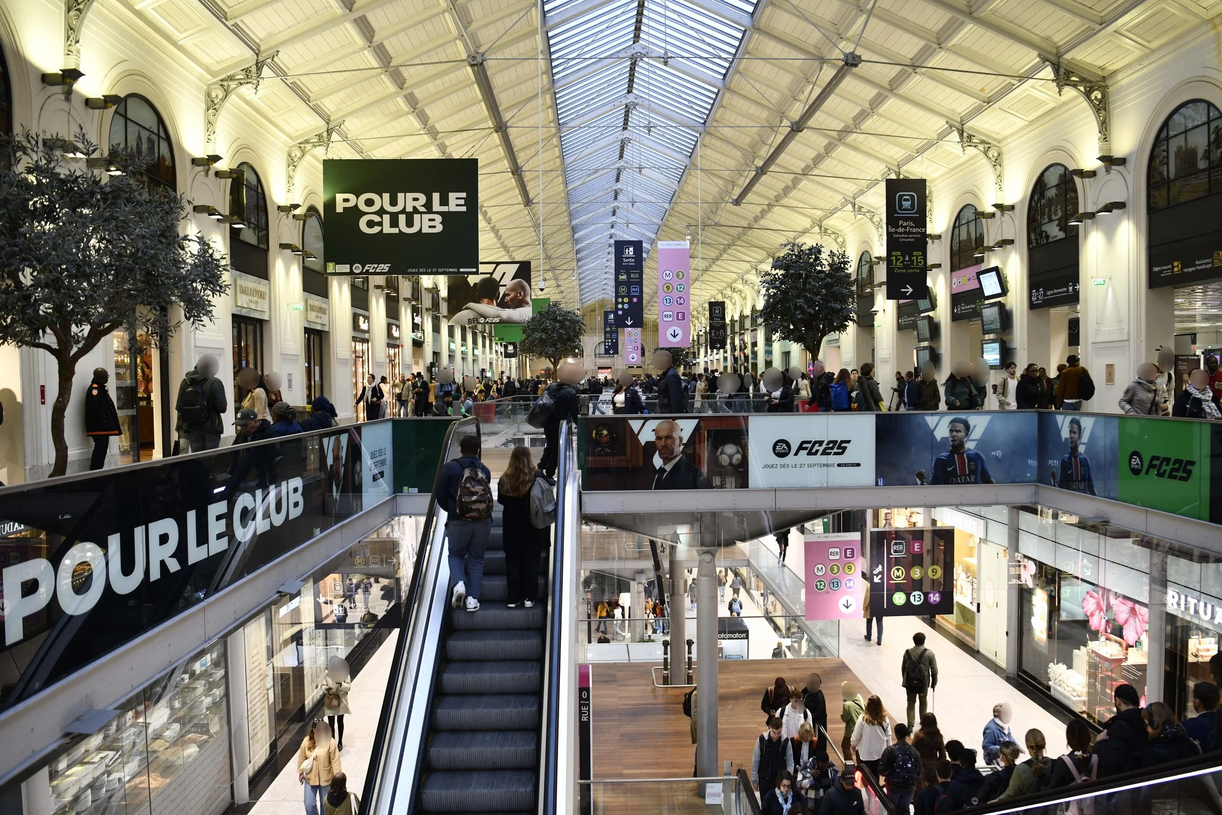 St. Lazare Station Domination, Paris, France. Combined print placements, screen wraps and digital screens for a full station takeover.